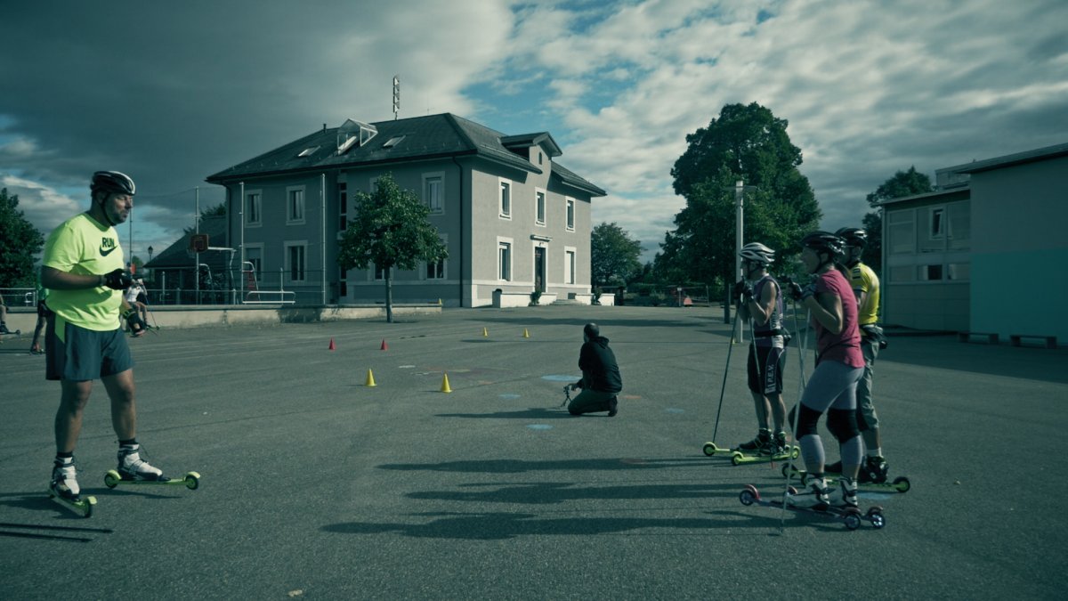 Durant l’été, les entraînements ont lieu dans la campagne genevoise, notamment en ski à roulettes.